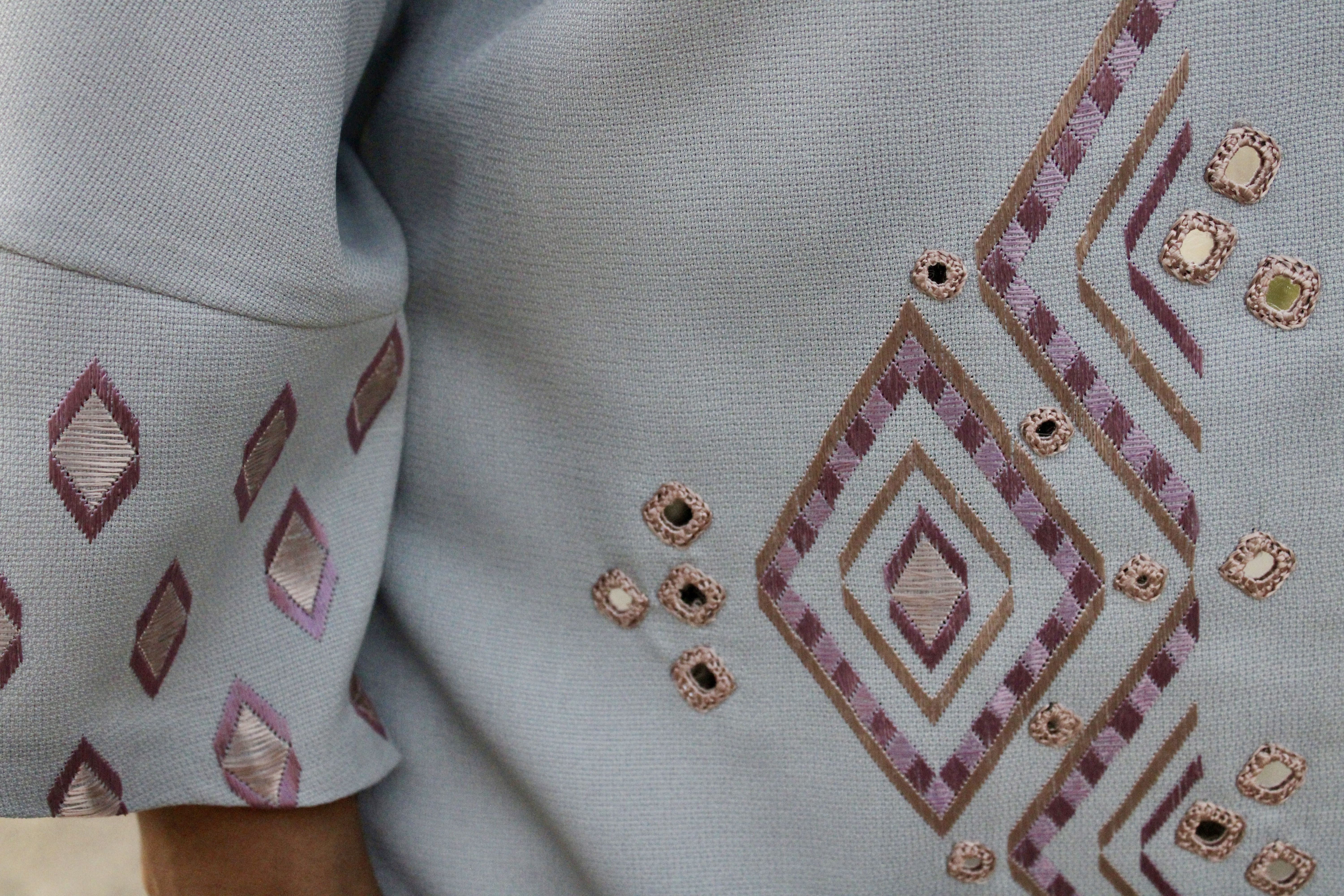 خامه دوزی و آیینه دوزی شده رنگ طوسی